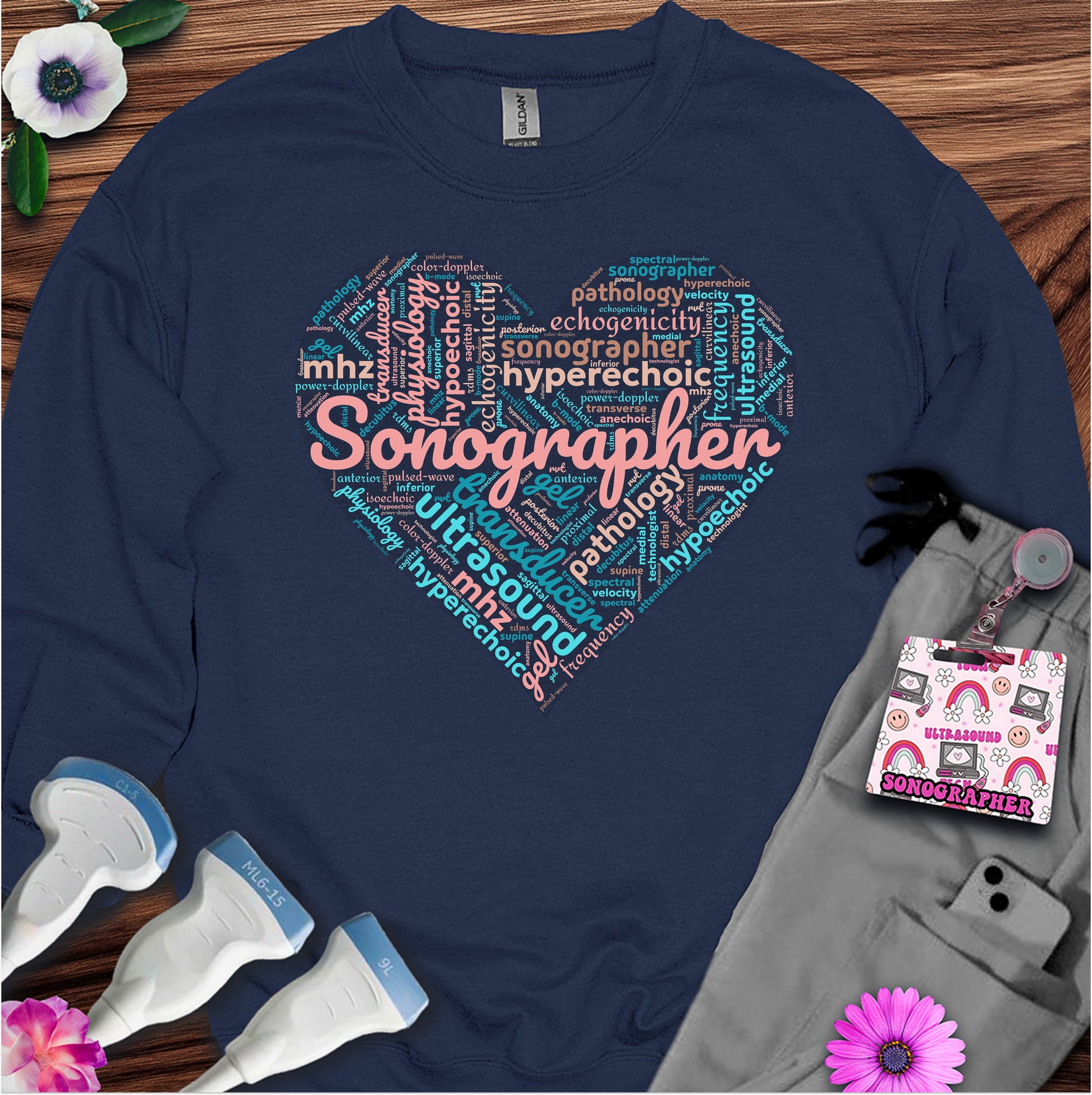 Celebrate your passion for ultrasound technology with our unique 'Pastel Sonographer Heart' Sweatshirt! Featuring a word cloud design, this tee is perfect for professionals and students alike.